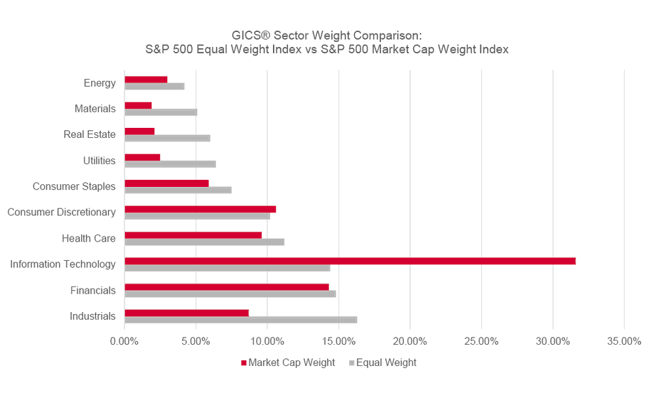 Sectorale samenstelling van een equal‑weight versus een marktgewogen S&P 500