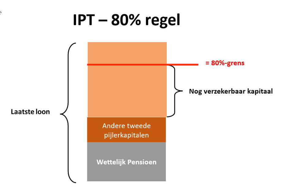 De som van je wettelijk pensioen en je aanvullend pensioen (via IPT, groepsverzekering, VAPZ, …) mag op pensioenleeftijd niet hoger zijn dan 80% van je laatste loon.